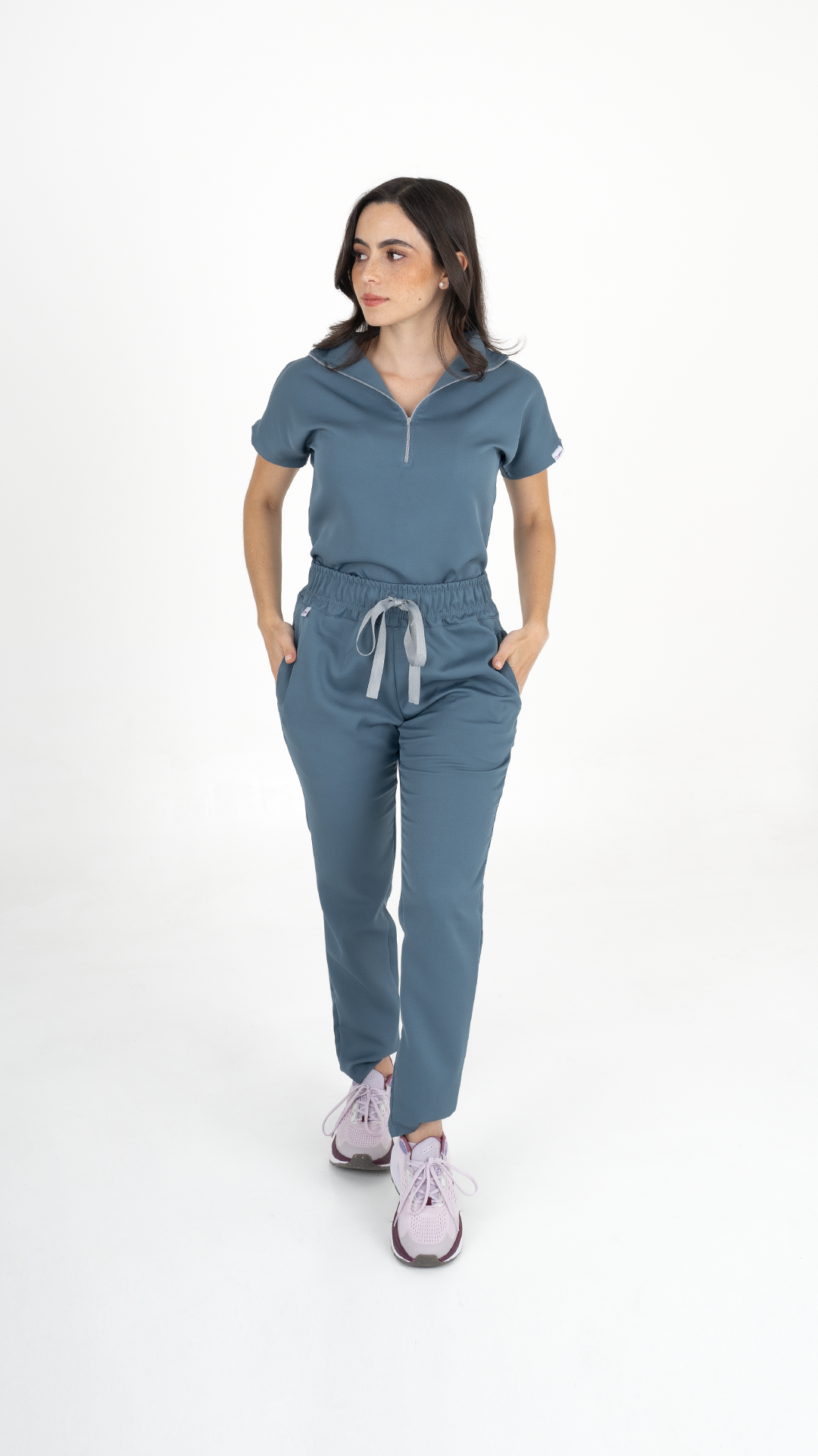 Blusa: Tipo cuelo alto con cierre fronta, puedes usarlo cerrado o abierto para dar una apariencia de cuello tipo polo.